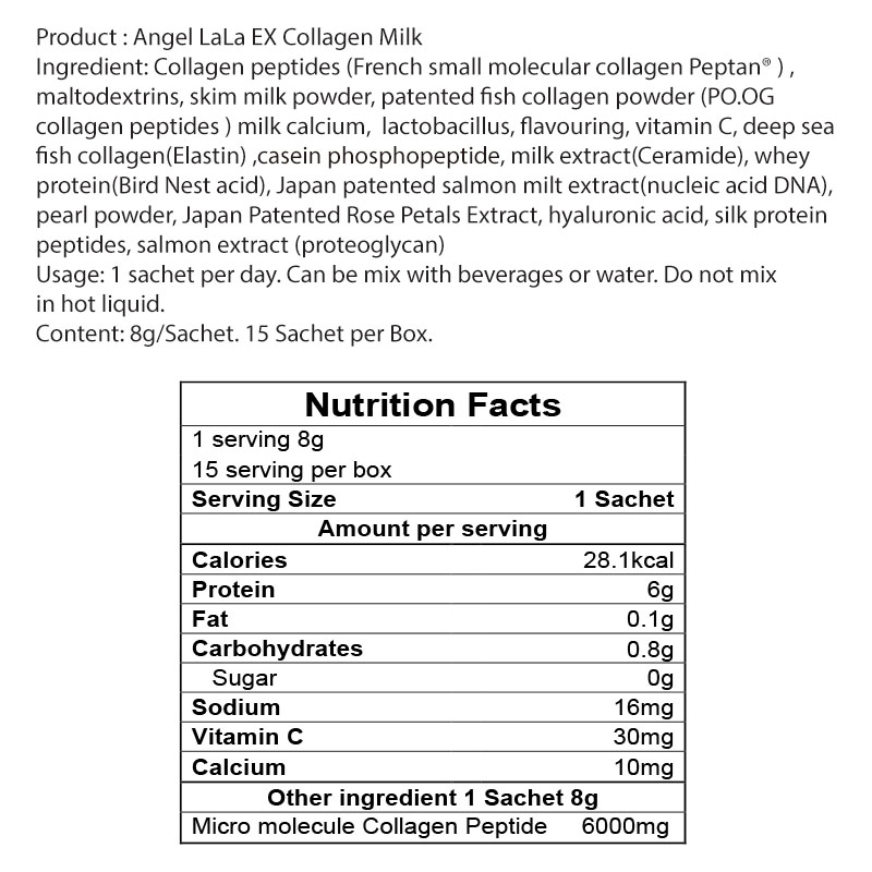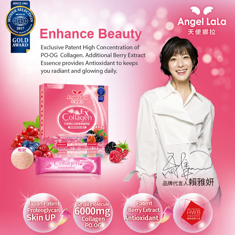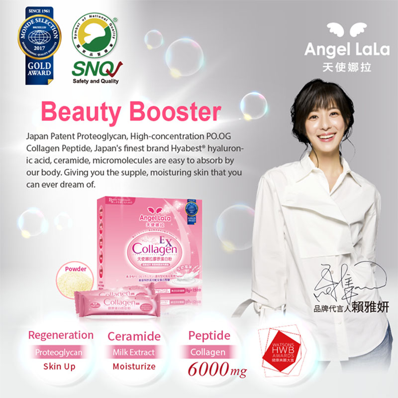 Angel LaLa Collagen contains Elastin which is a natural product in our body (10% to 20%). It helps to bond and keep the Collagen in place. Proteoglycan is Angel LaLa Japan patent product. Naturally found in our body, it helps to merge the Elastin and collagen. Giving your skin a more elastic texture and look. Consisting of EGF-Like which promotes your body to produce more collagen naturally.