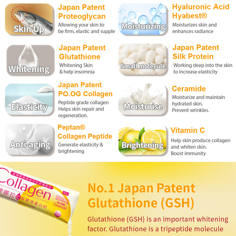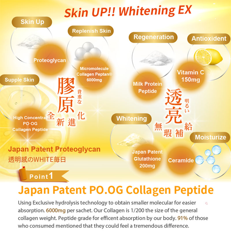 With added proteoglycan, high concentration PO.OG collagen peptide, glutathione, make your skin radiant!