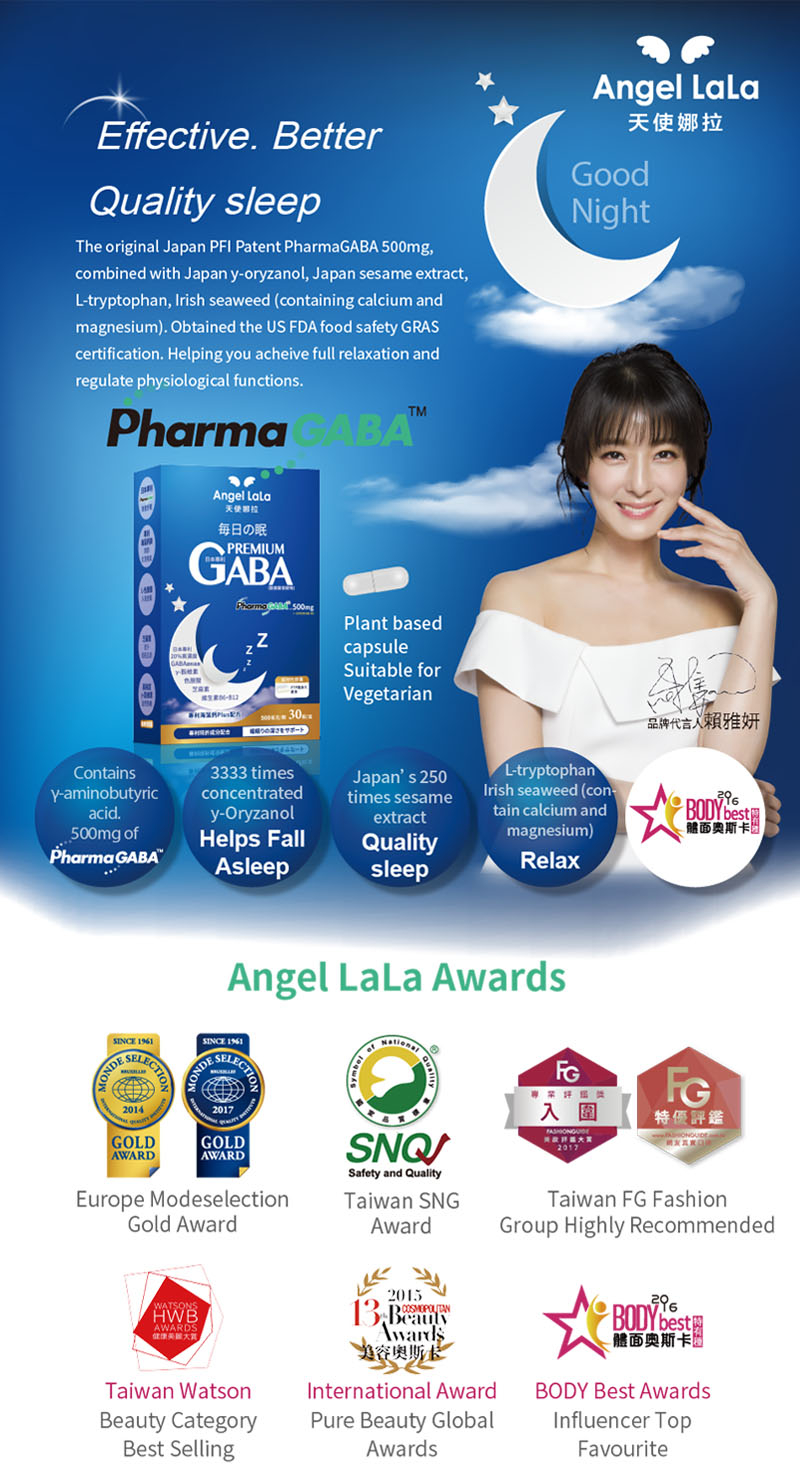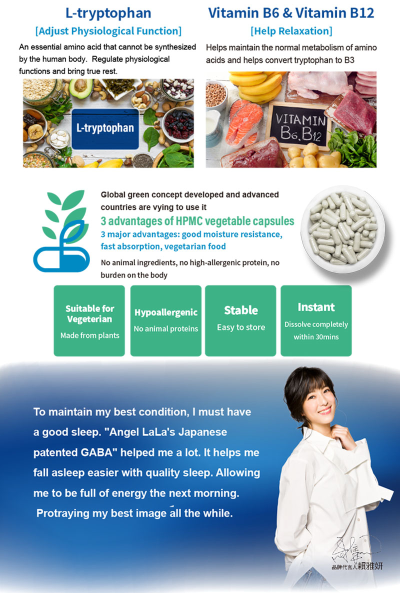 Taiwan No.1 Angel LaLa Premium GABA. L-tryptophan. Promote Quality sleep. Help insomnia. Veg Capsule