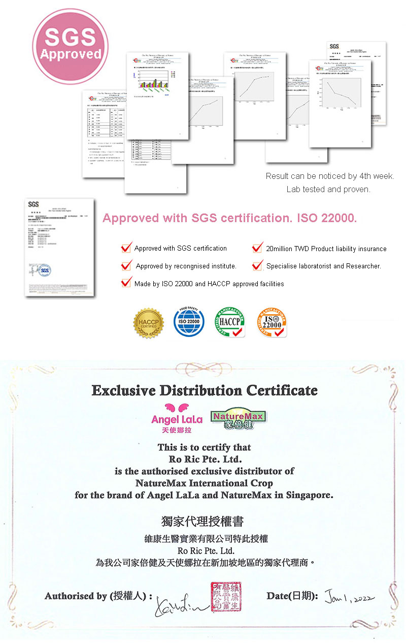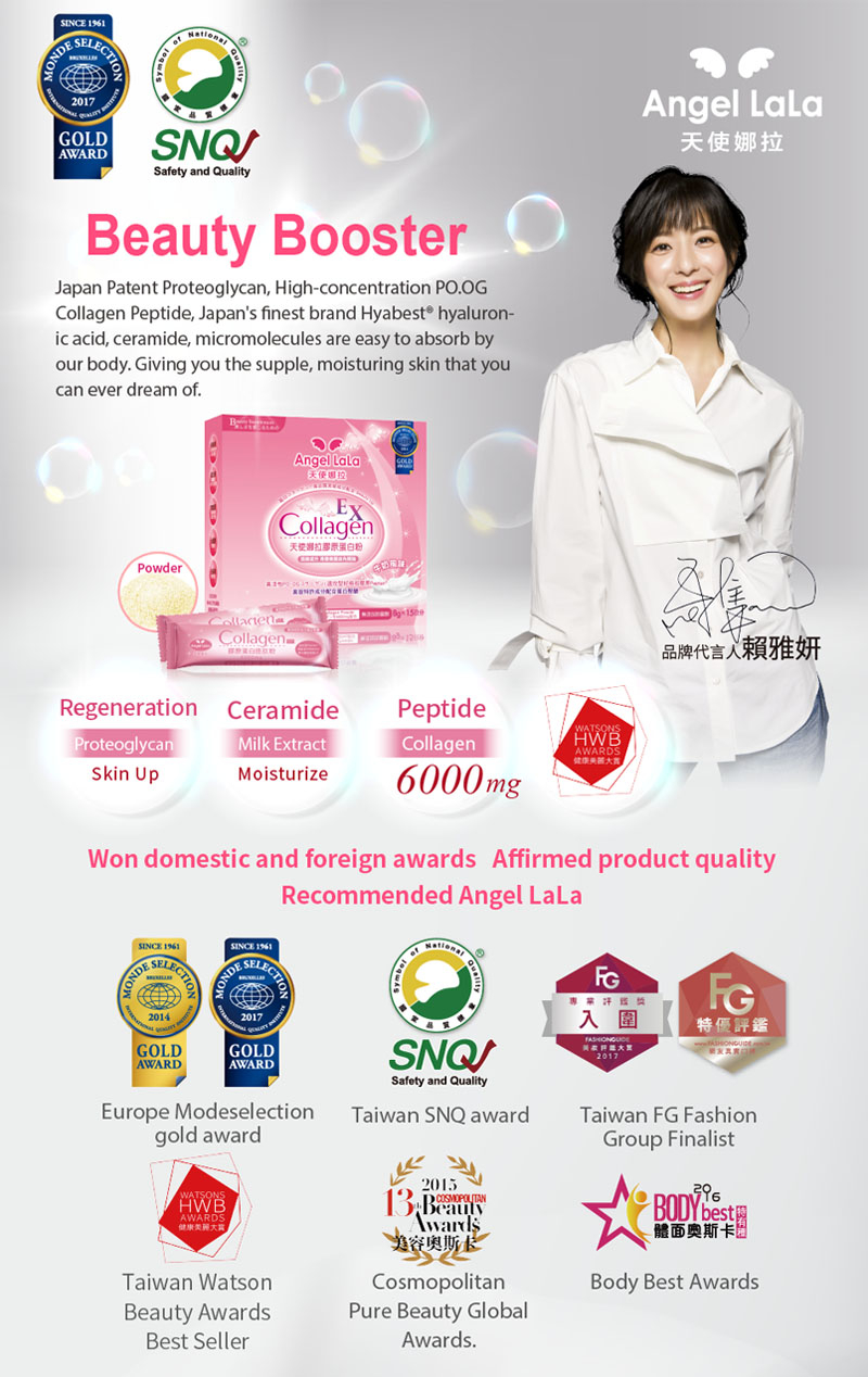 Angel LaLa Collagen contains Elastin which is a natural product in our body (10% to 20%). It helps to bond and keep the Collagen in place. Proteoglycan is Angel LaLa Japan patent product. Naturally found in our body, it helps to merge the Elastin and collagen. Giving your skin a more elastic texture and look. Consisting of EGF-Like which promotes your body to produce more collagen naturally.