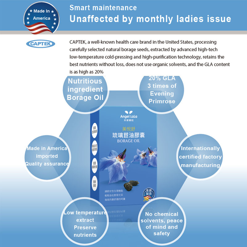 Taiwan No.1 Angel LaLa Borage Oil. Relief menses discomfort/Regulate menses period/Women Wellness