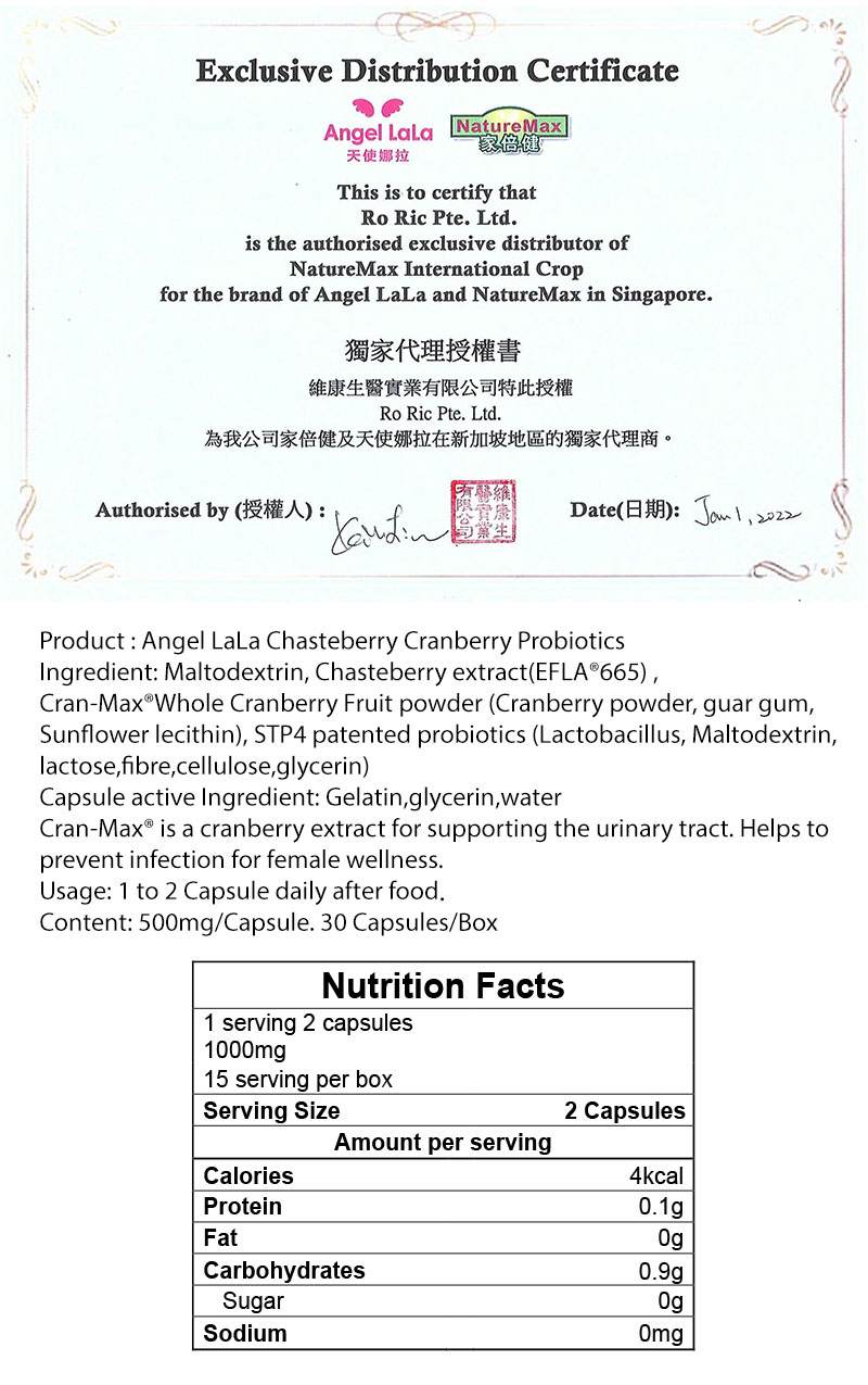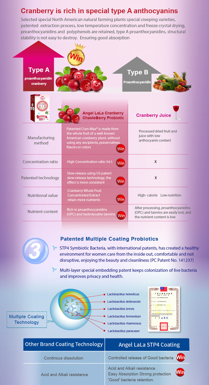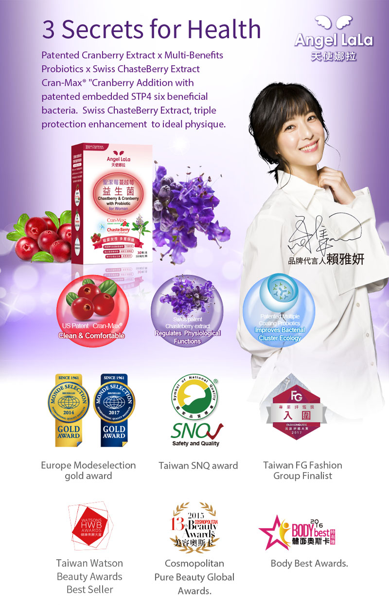 Taiwan No.1 Angel LaLa Cranberry Chasteberry Probiotics Lactobacillus/Detox/Women Wellness